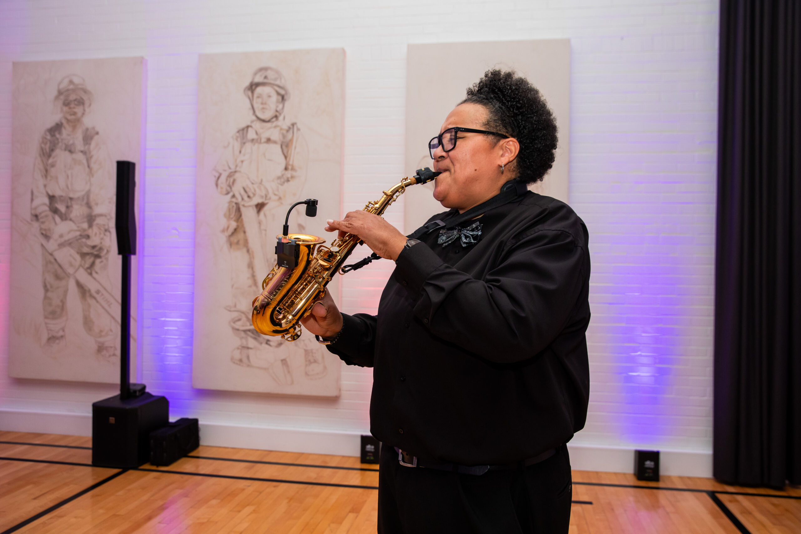Rhoda G plays the saxophone in the Spark Lounge. Photo: Tyler Small.